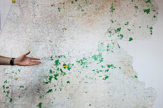 A sala de comando fica na Figueira da Foz, um espaço com três enormes mapas a ocuparem toda a parede. Um do Norte do país, outro do Centro, outro do Sul. No pico da Fase Charlie, estão ali sete pessoas em permanência. «Em cada comando distrital de operações de socorro temos um agente de ligação que nos avisa por telefone se existir incêndio que represente perigo para as nossas propriedades.»