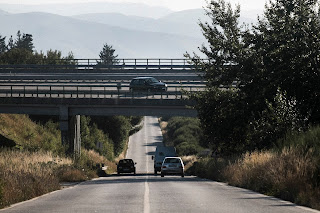 A paisagem vai mudar, km 699, levanta o lombo, o traçado é a ondear, voltam as curvas, os ganchos, as ganchetas, a densidade florestal, já entramos no Algarve, volteados, vê-se Faro.