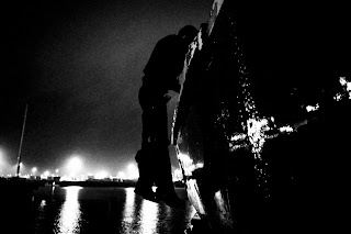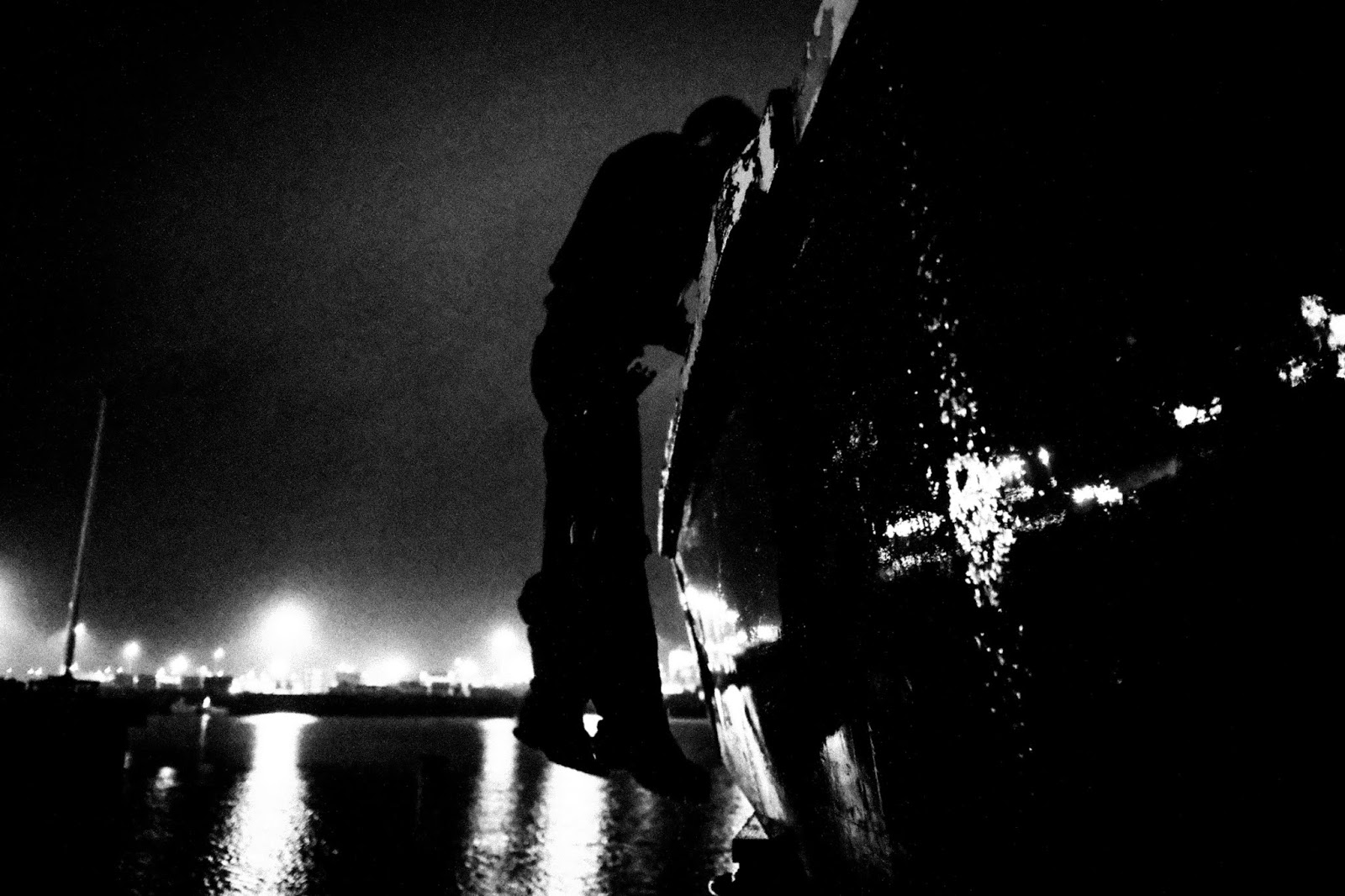 Mas esta noite dão com uma brecha na segurança. Num lugar ermo onde o arame farpado encontra o mar há uma rampa de terra que lhes permite passar para o interior do porto, muito perto do lugar onde os camiões entram para o ferry. A escuridão é total. Não há qualquer movimento. Rachid, Said e Mustafa avançam agachados por entre os veículos até à dobra da rede. Os pés entram na água, mas conseguem passar. Correm para trás de um contentor. E depois desaparecem na noite.